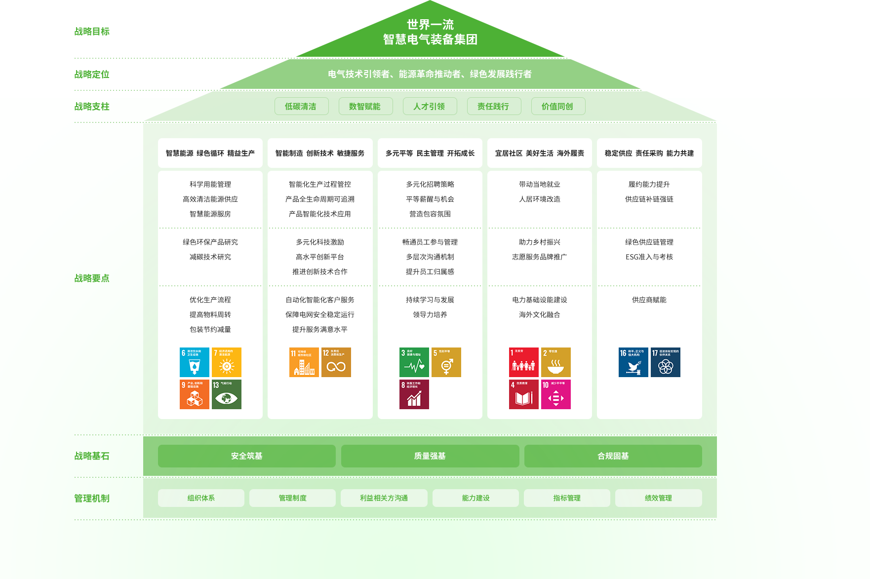公司坚持“赋能智慧电气、创引绿色能源”的企业使命,运用先进的数字技术、控制技术和信息通信技术,推动电气装备向智能化转型升级,顺应能源绿色清洁低碳转型趋势, 创领绿色产业生态建设,以清洁和绿色方式满足能源电力需求和经济社会发展,致力于成为电气技术的引领者、能源革命的推动者和绿色发展的践行者。